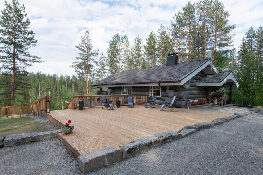 Tasokas päämökki käsittää n.170m 2 lämmintä tilaa ja lisäksi n.60m2 terassia kahdessa kerroksessa.