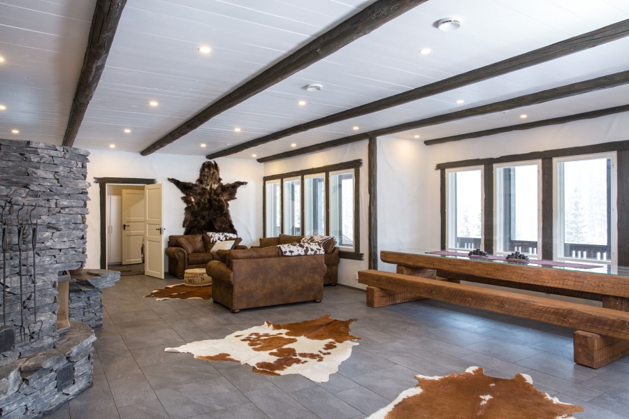 Hakkeella toimivan lattialämmityksen lisäksi tupaa lämmittää jyhkeä liuskekivestä muurattu takka. Isolta järvinäköalaterassilta löytyy iso pöytä sekä kaasugrilli. Rantaan johtavia portaita valaisee tunnelmalliset led-valot. Rannassa rantamökin lisäksi laituri, aurinkoterassi ja soutuvene.